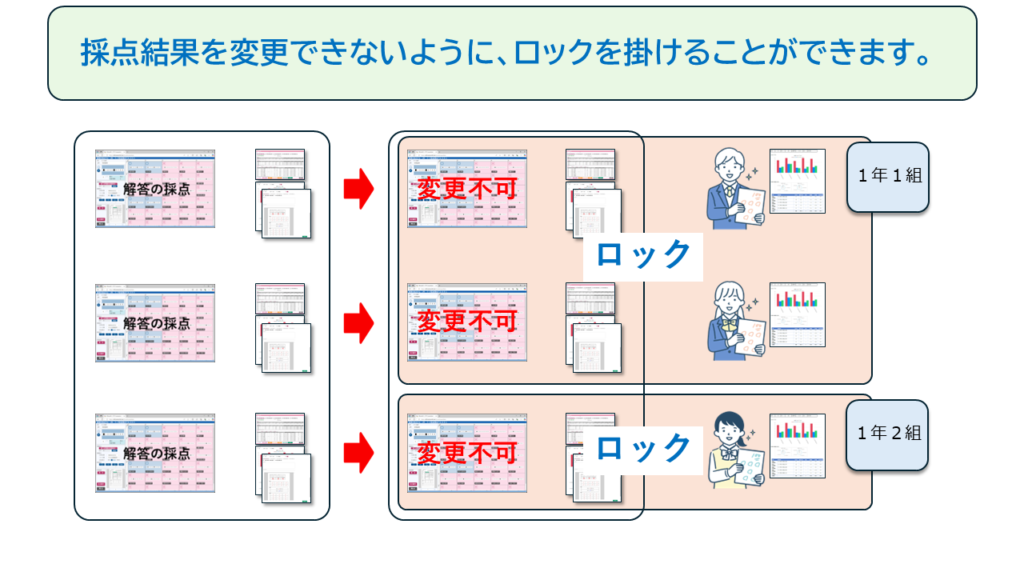 生徒の解答の採点が完了し、生徒に答案を返却した後は、採点結果が変更できては不都合が生じる場合があります。